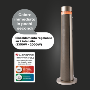Powerful ceramic tower fan heater, silent and designer.