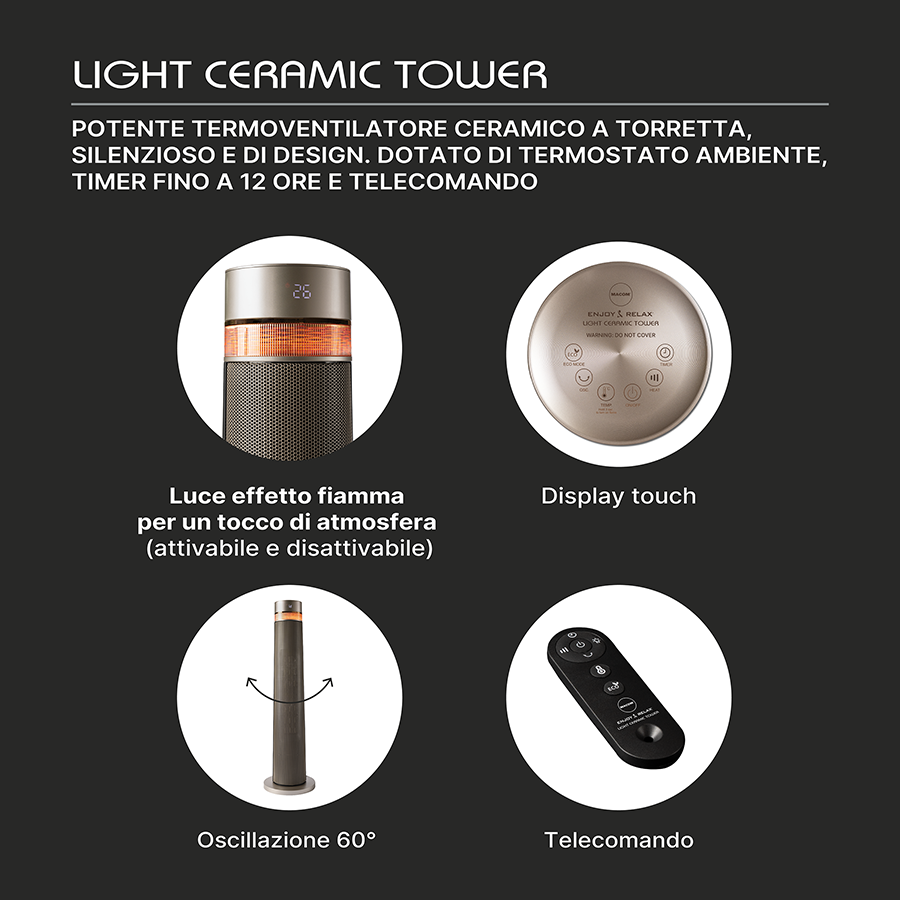 LIGHT CERAMIC TOWER is equipped with an ambient thermostat