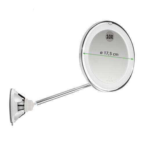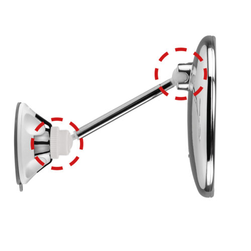 Specchio ingrandente con ventosa a ghiera e innovativa asta telescopica con doppio snodo