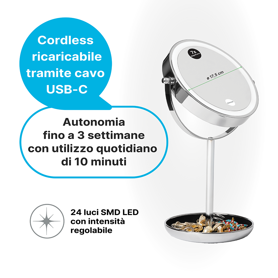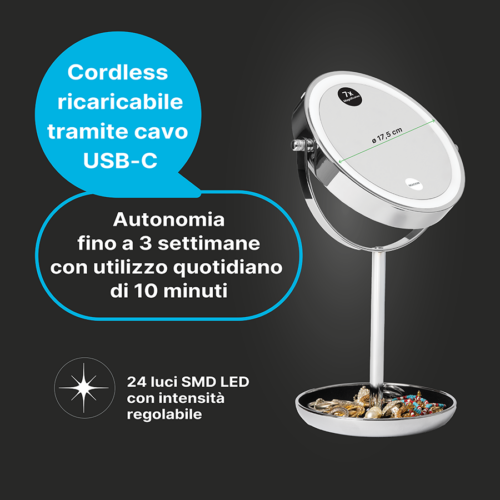 Doppio specchio normale/ingrandente con ricarica USB